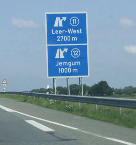 Autobahn A31 Abfahrt Jemgum, Richtung Ditzum über Jemgum, Midlum, Critzum, Hatzum, Nendorp, kurz: „immer geradeaus“.