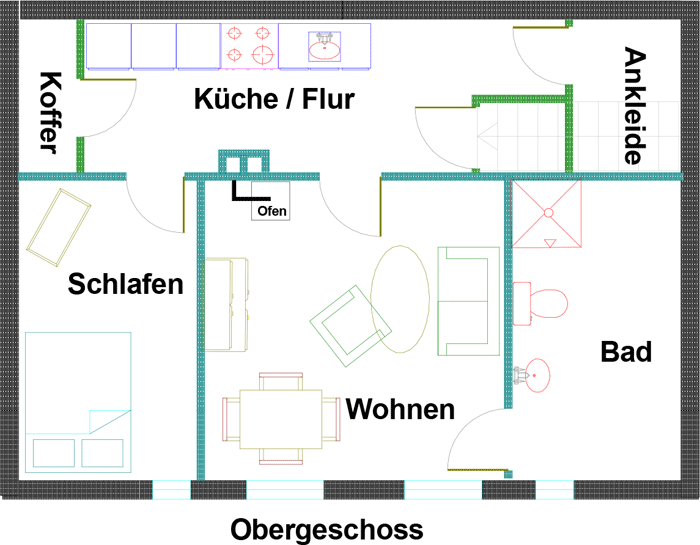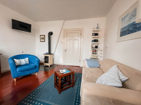 - Stube mit Kaminofen, Schlafsofa für 2 Personen, Flatscreen SAT-TV, Musikanlage